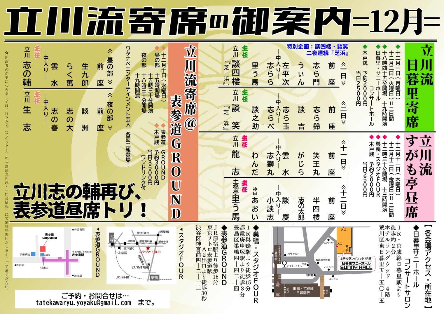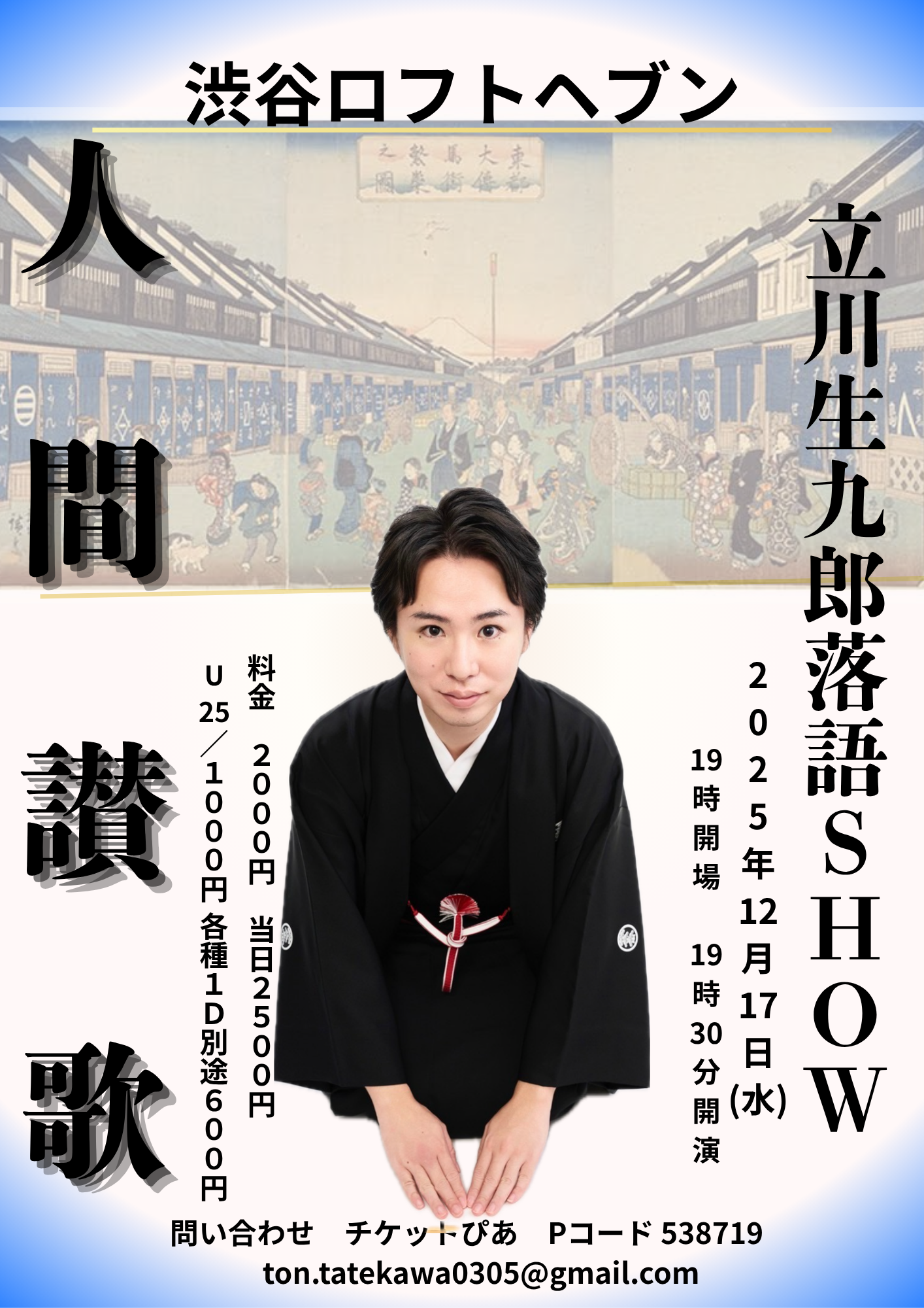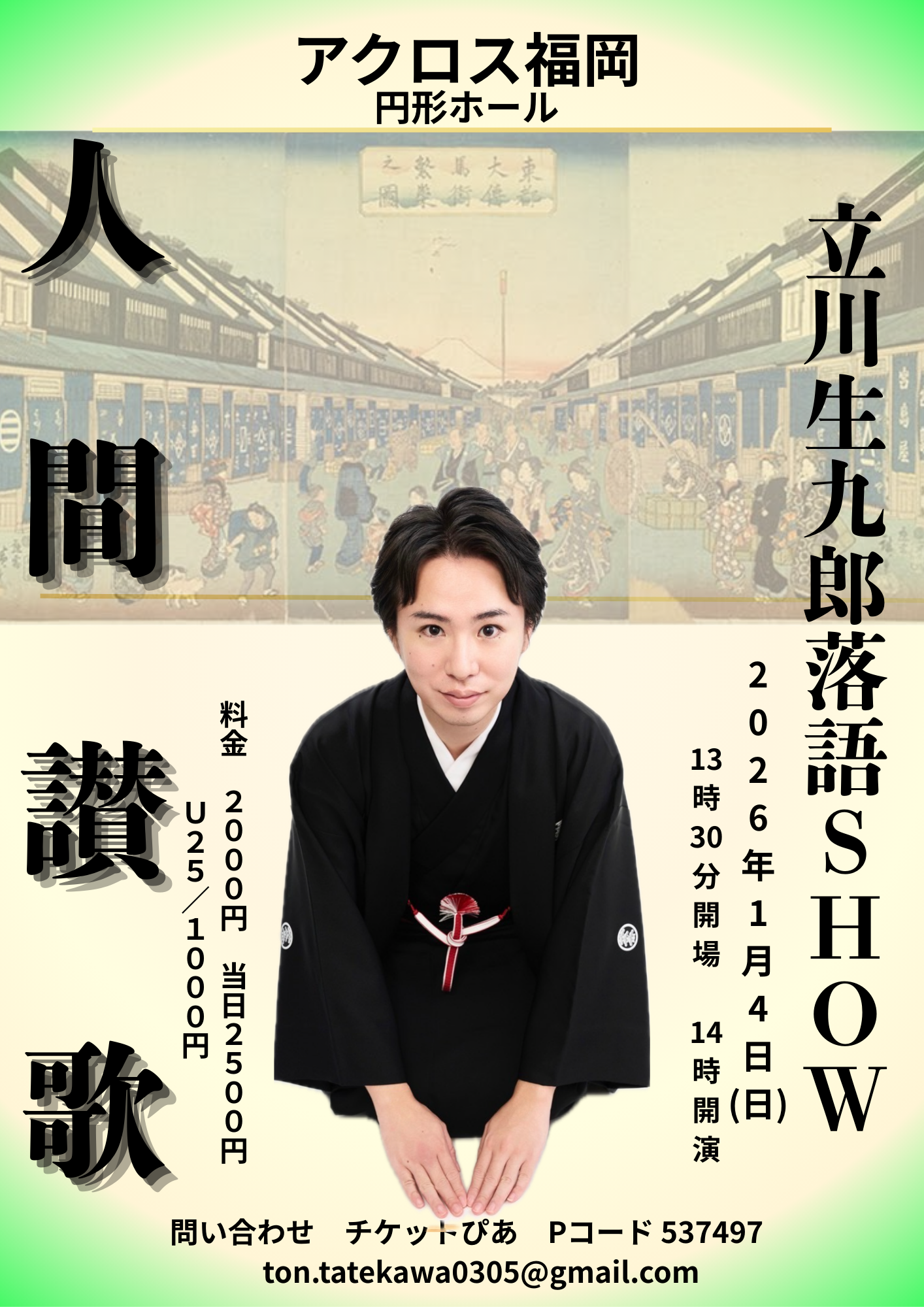 落語家 福岡県太宰府市出身⛩️ 東京を中心に全国に落語の和を広げていきます! 2020年2月入門 2021年1月「前座」立川生ぼう 2024年11月「二ツ目」立川生九郎 落語独演会〜立川生九郎落語show〜 11/15 横浜 にぎわい座B1Fのげシャーレ 12/17 東京 渋谷ロフトヘブン 1/4 福岡 アクロス福岡円形ホール 4/4 太宰府 まほろばホール TV出演歴:笑点特大号